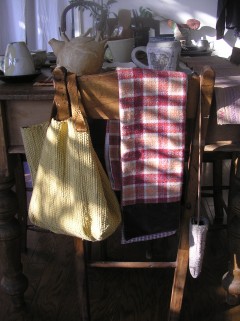 お気に入りの裂き織りバックです。。。