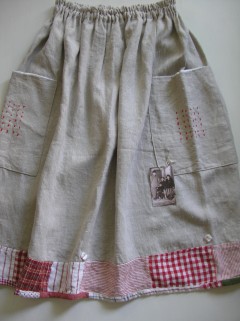リトアニア麻+土佐紬つぎあわせスカート~。