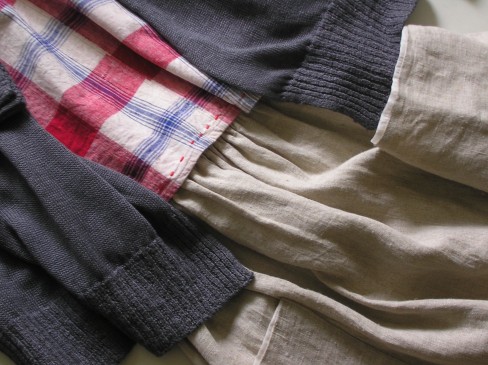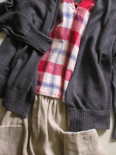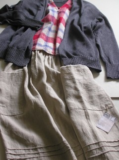 麻カーディガン+早川ユミさんのカレンベスト~。