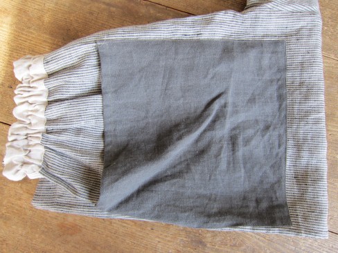 早川ユミさん リトアニア麻のもんぺ。 グレーのストライプに大きなポケットが とてもお洒落です~。 ¥29,000