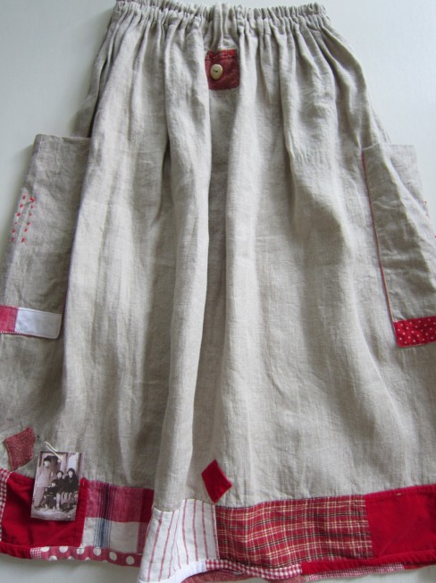 早川ユミさん リトアニア麻つぎはぎスカート(赤)③