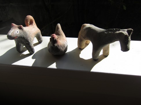 小野セツローさんの土の干支たちです。 朝日を浴びて気持ちよさそうです~。