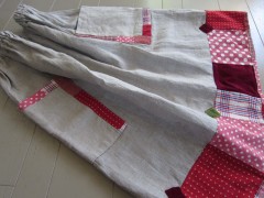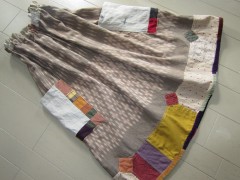 早川ユミさんのスカート 上から つぎはぎスカート① ¥35,000 麻スカート ¥35,000 つぎはぎスカート② ¥35,000 草木染手織り絣布スカート ¥35,000