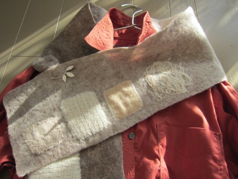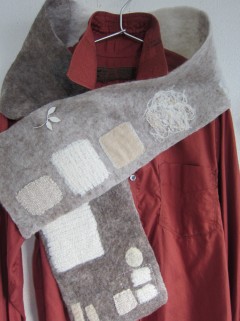 嶋田郁子さん フエルトのショール 沖眞理さん クレイジーステッチのシャツ きたのまりさん シルバーのブローチ
