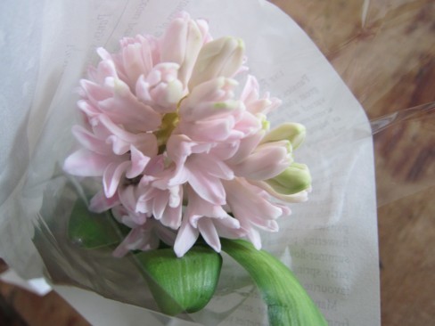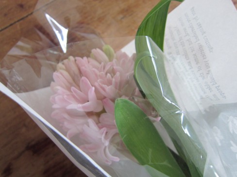 増田由希子さんからの入荷の荷物とともに 素敵なピンクのヒヤシンスが届きました。 お店は一足早く春の訪れです。