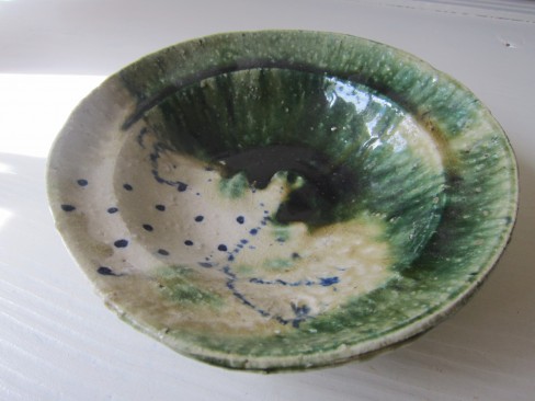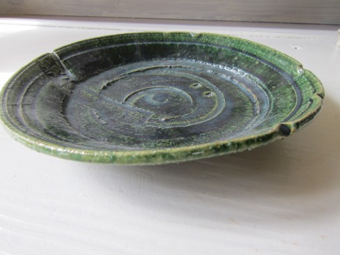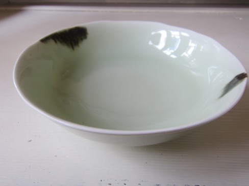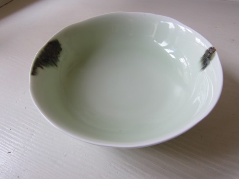 上川金一さんのお皿。 全体が薄いグリーンのトーンと鉄釉の模様が素敵です! ¥8,400