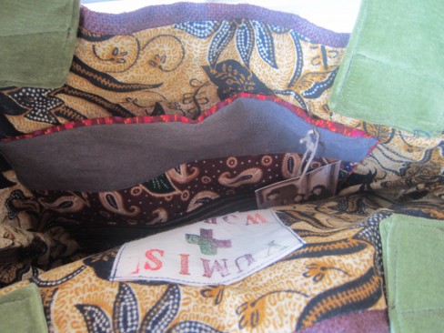 y工房 さとうゆきさんのぐるぐるバッグ 表 麻生成 中布は真紅 小サイズ ¥8,500