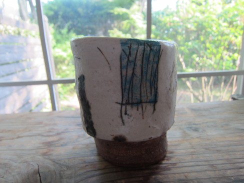 キム・ホノさんのごつごつしたカップです! ブルーのポイントが素敵です~。