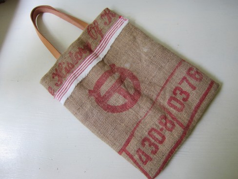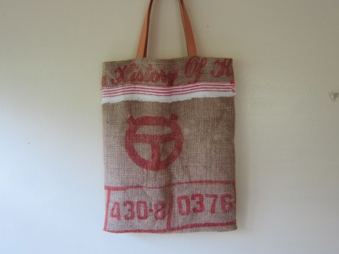 素材 表 コーヒー豆の麻袋 裏布 赤いストライプの綿布