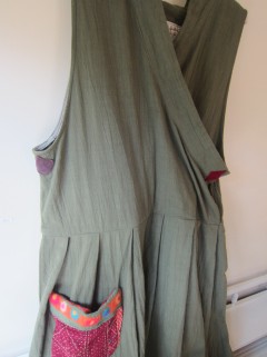 とてもきれいなモスグリーンです。 実際のお色は画像よりも濃いめのグリーンです。 秋に着たくなるチベッタンワンピースです。 是非お試しください!