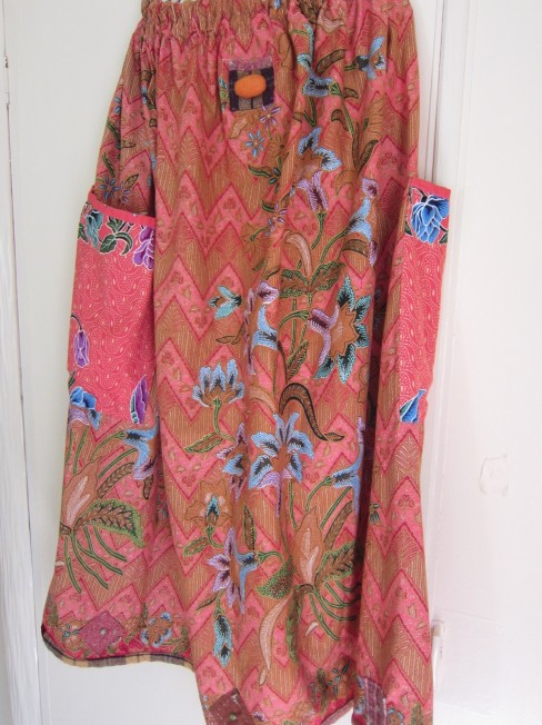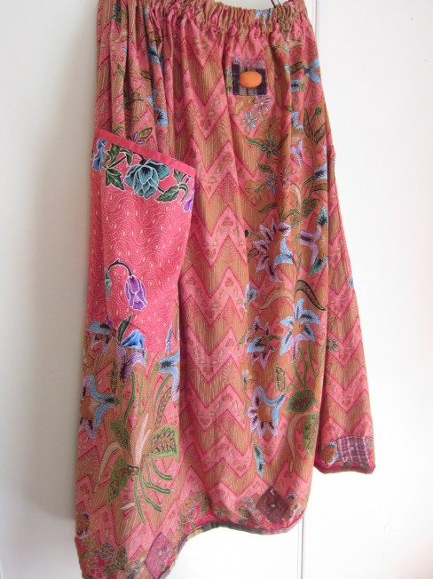 早川ユミ さらさらスカート+麻エプロン オレンジ系 ¥29,900 サイズ ウエストゴム 丈85㎝