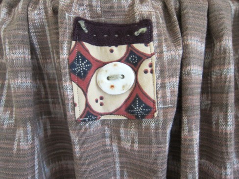 裾の色とりどりの布パッチは着ていてとても楽しくなります。