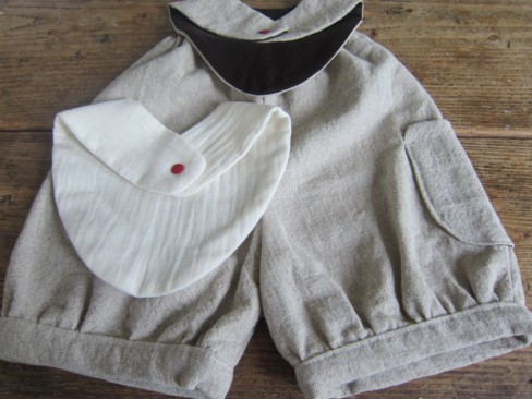 CHICU+CHICU5/31 チクチクベビー カボチャパンツセット 麻生成 白いガーゼのスタイ付。 ¥5,000