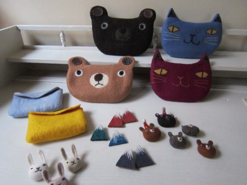 廣田良子さんのフエルトのポーチ&ブローチが