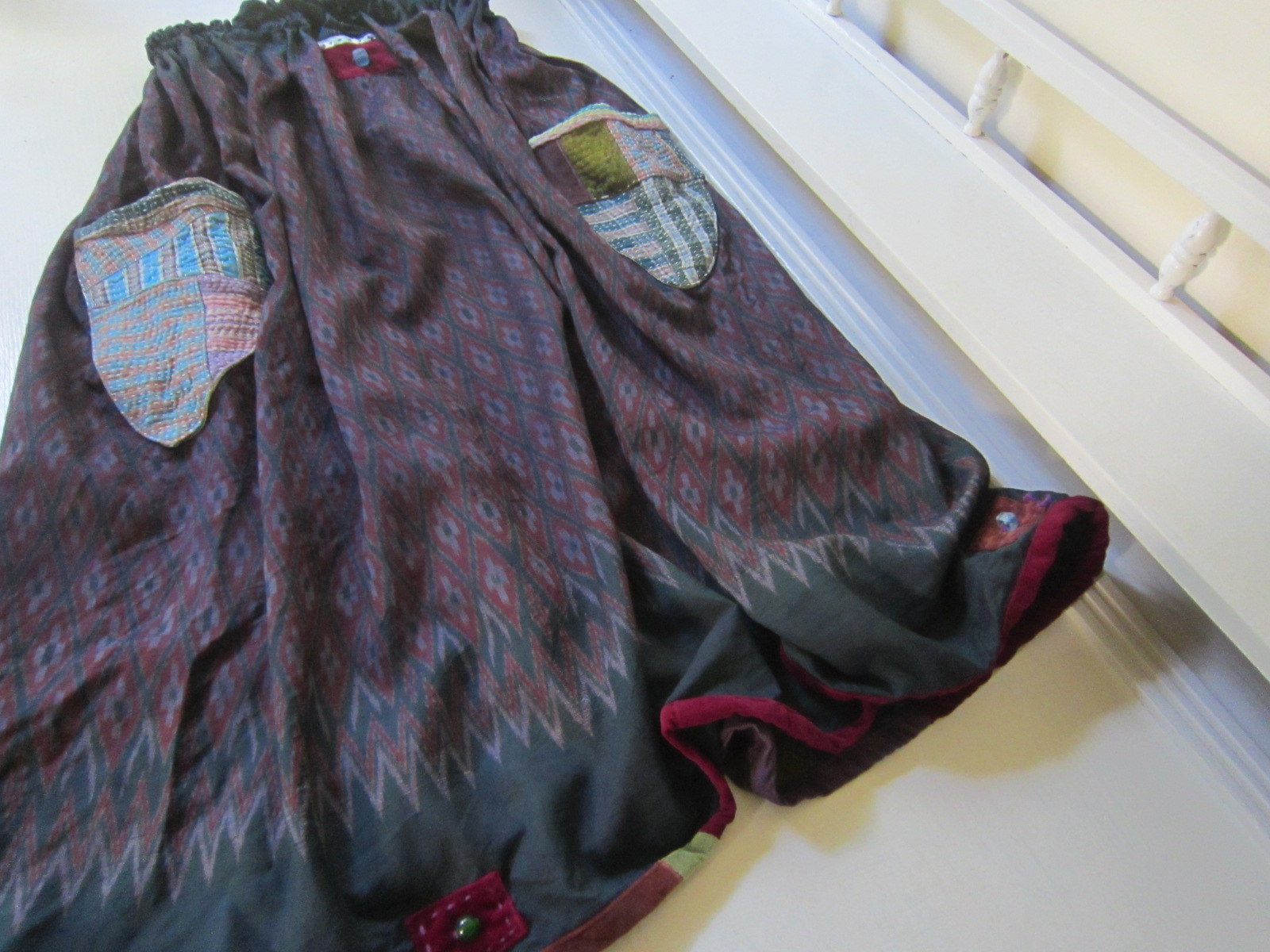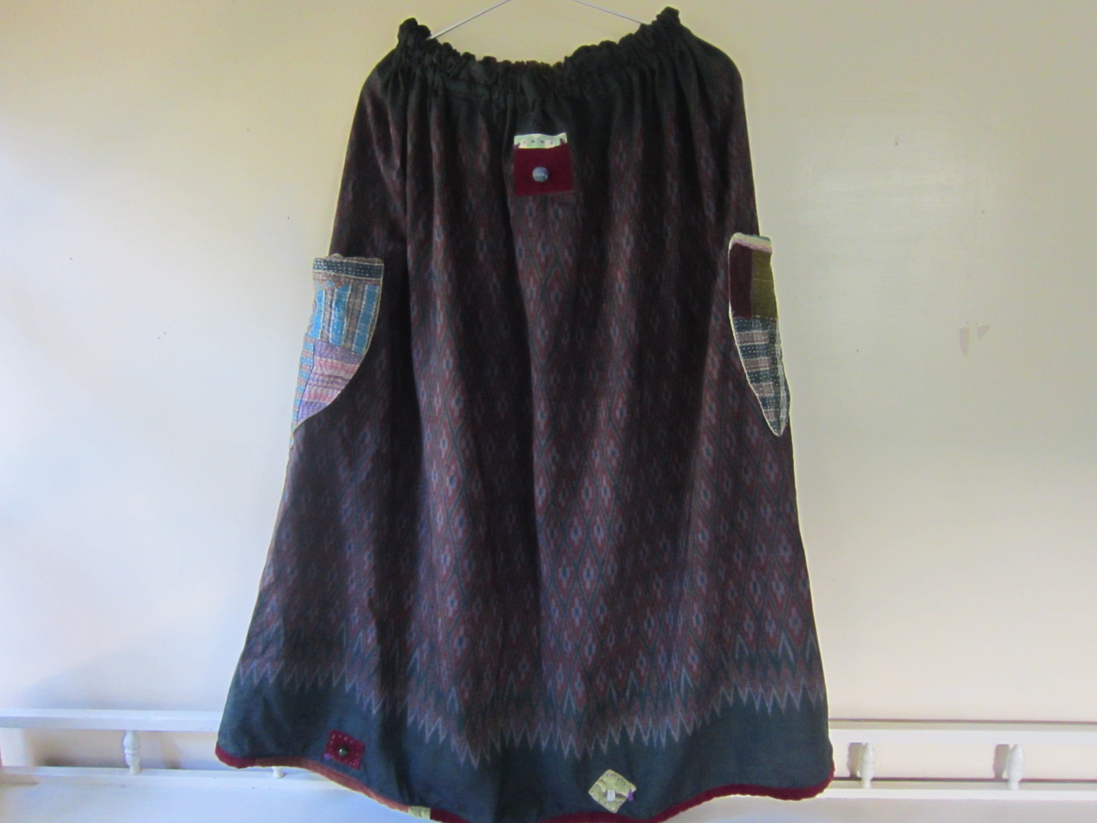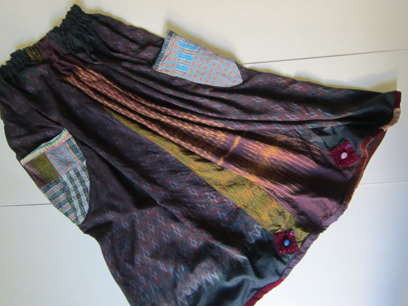 前身ごろは色違いのシルク布で継ぎ合わされています。