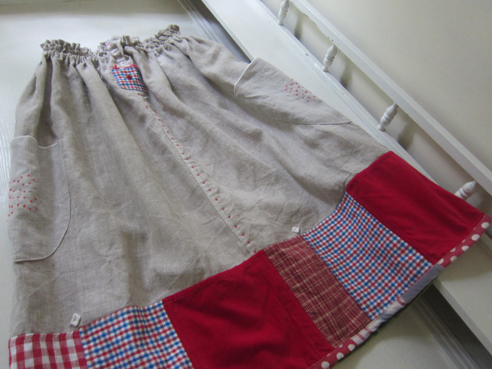早川ユミ リトアニア麻+土佐つむぎ+上海木綿継ぎはぎスカートA