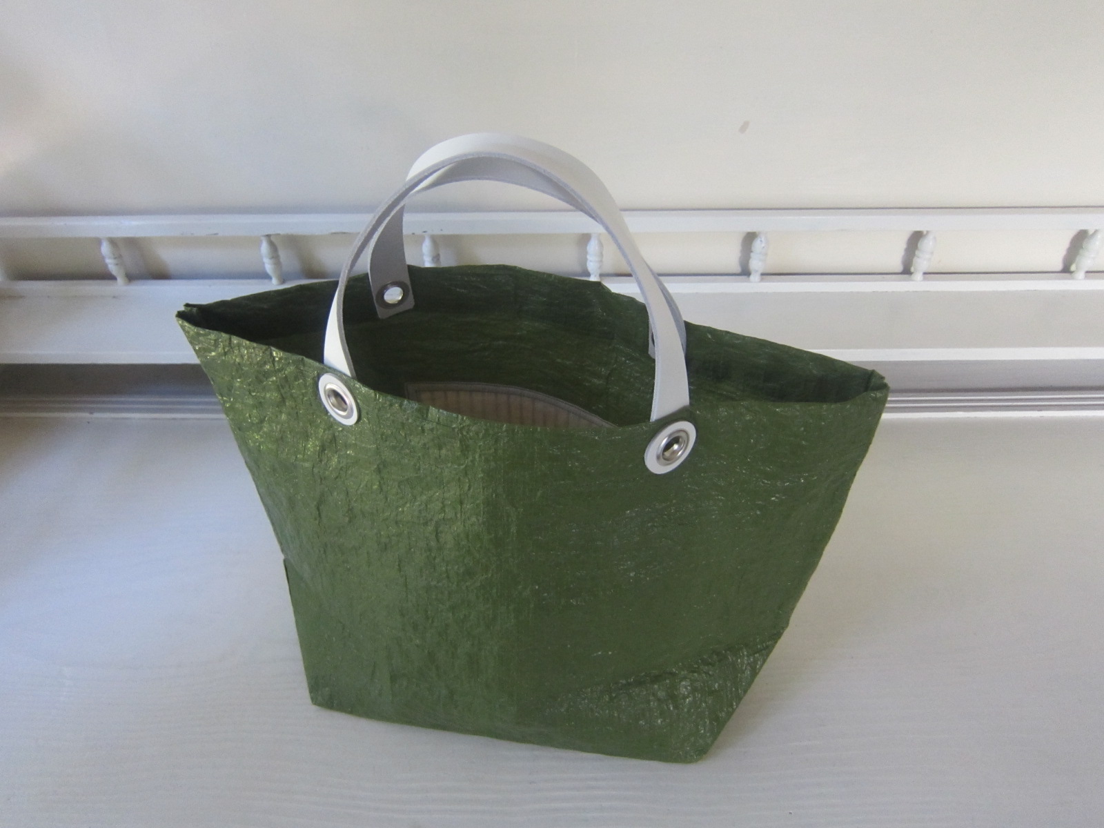 UNTIDY大塚淳子 ビニールBag(定番) 緑 角布(ストライプの古い布)