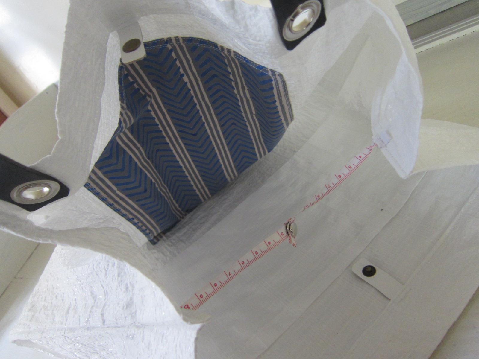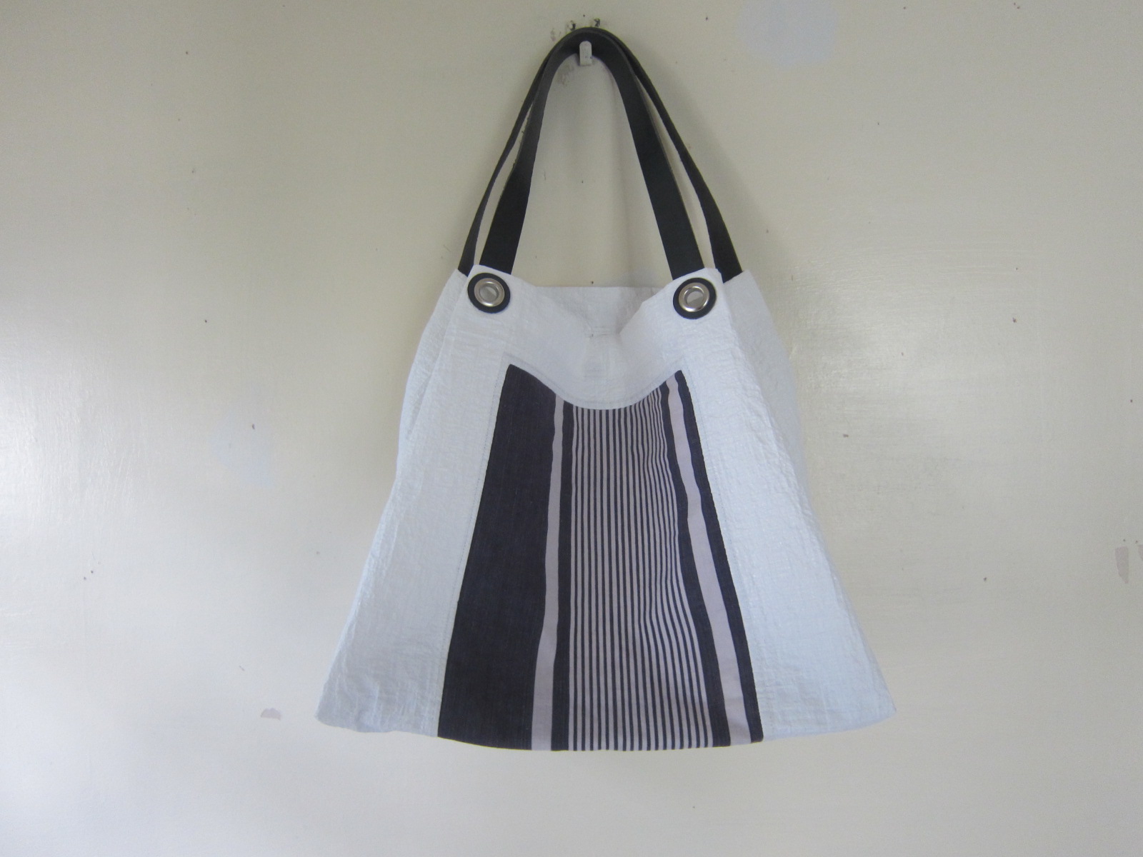 UNTIDY大塚淳子 ビニールBag(横長大) 角布(紺ストライプ古い布)
