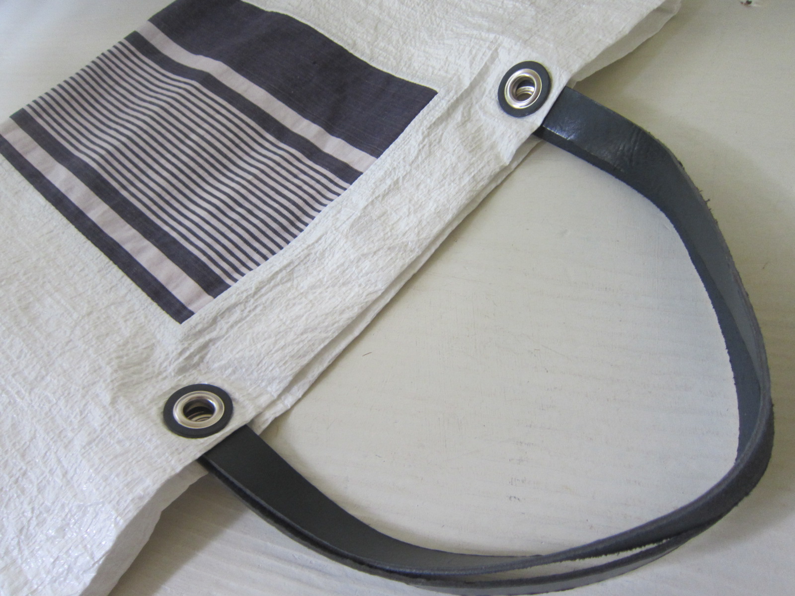 UNTIDY大塚淳子 ビニールBag(横長大) 角布(ストライプ古い布)