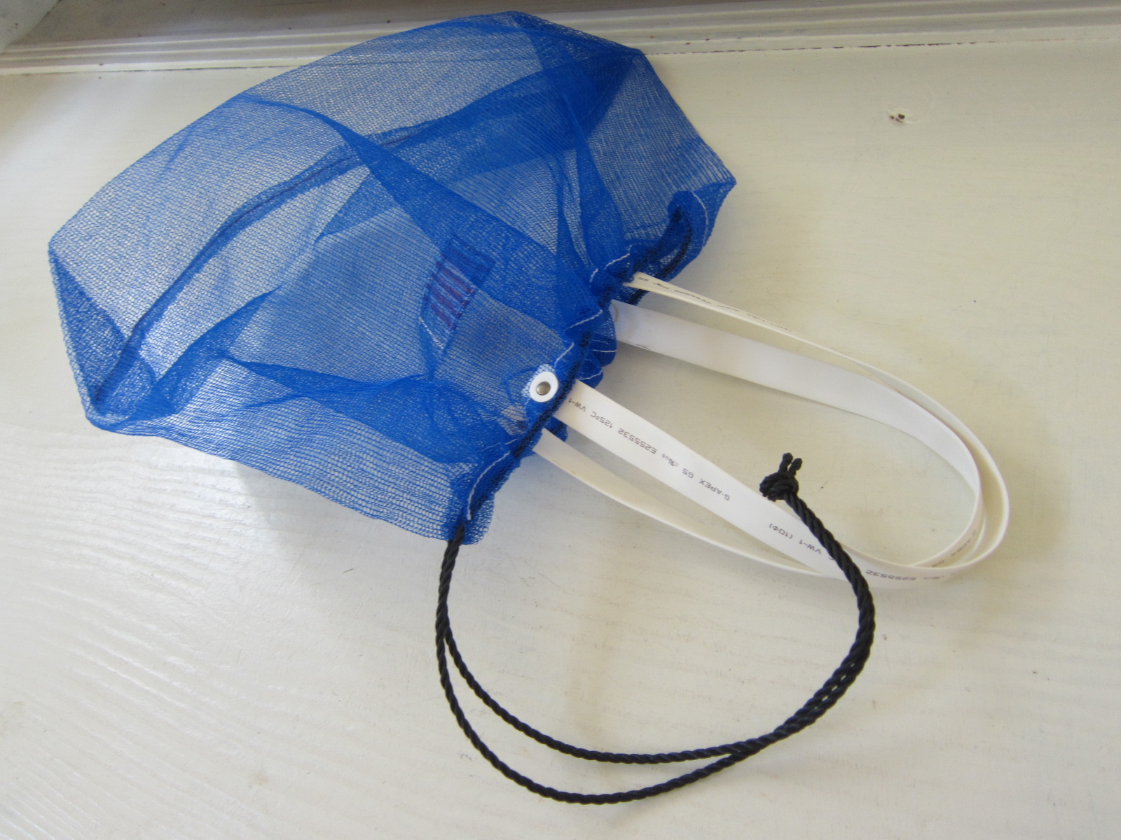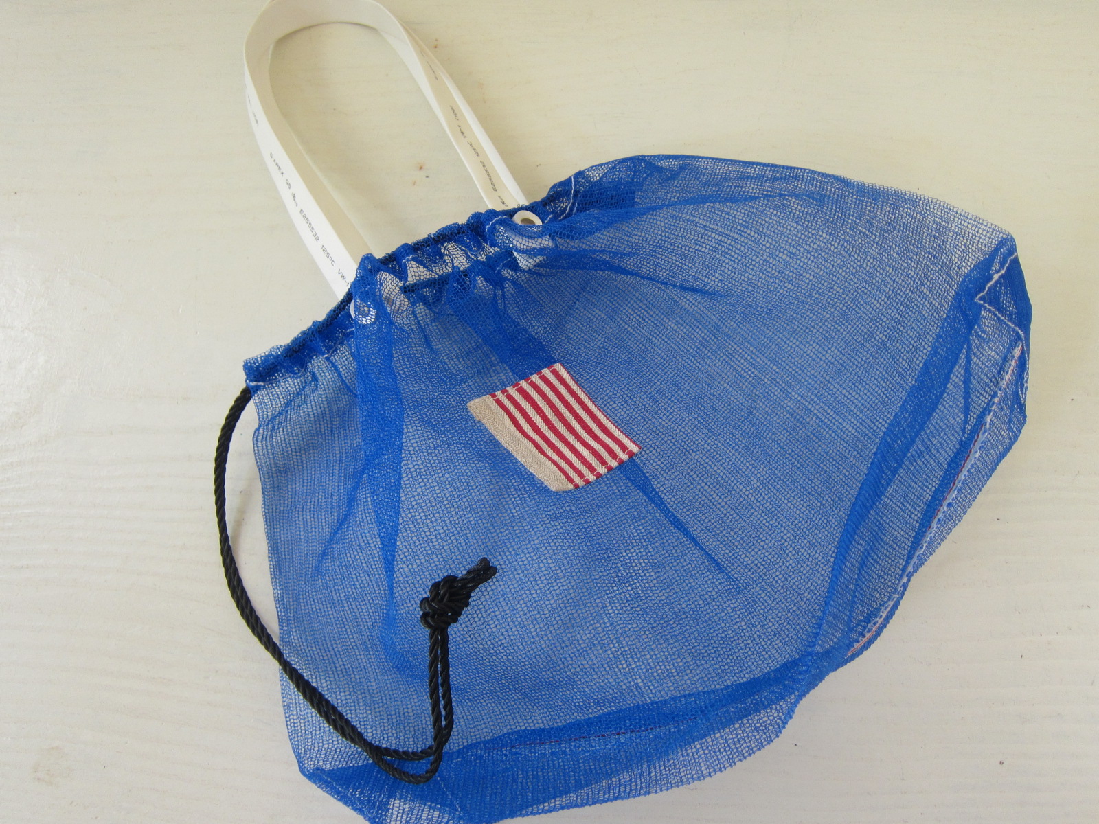 UNTIDY大塚淳子 青いネットバッグ・赤ストライプ(布)