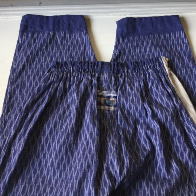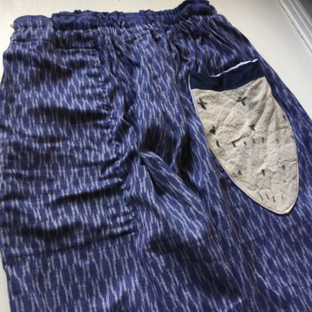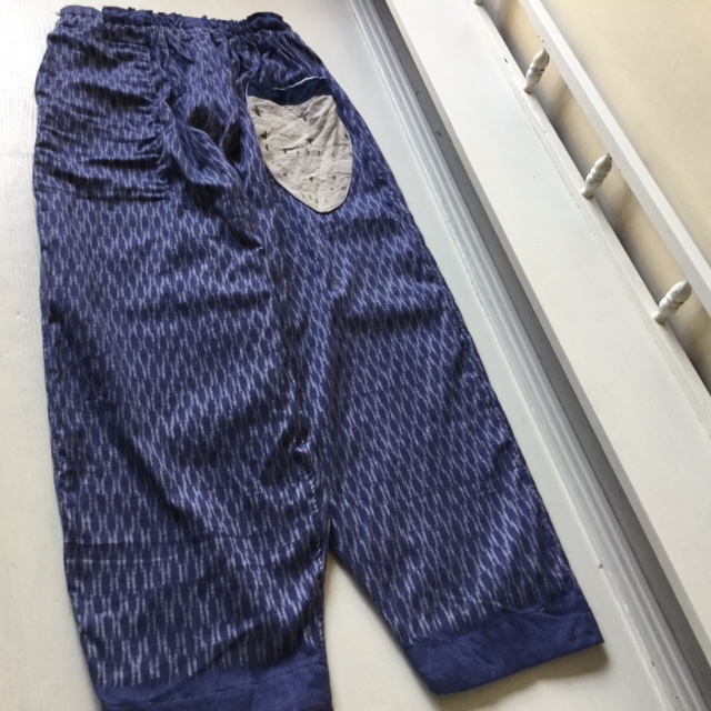 早川ユミ 草木染め手織り絣布もんぺ・紫ブルー
