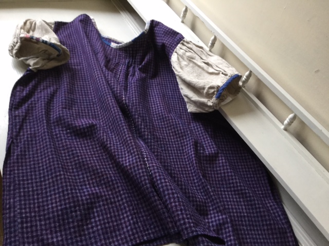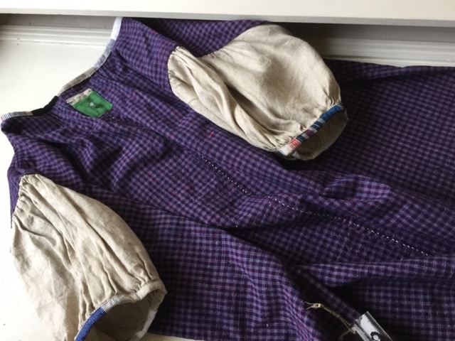早川ユミ 上海木綿スモック(パープルチェック)新入荷
