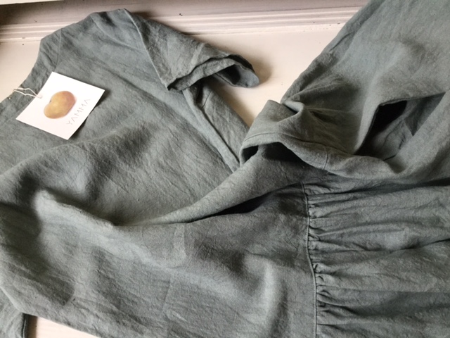 うすいグリーンに近いブルーです。 とても爽やかなお色です。 右脇に内ポケットがついています。
