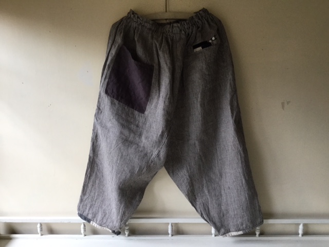 早川ユミ リトアニア麻もんぺ(グレーストライプ)