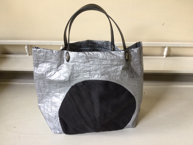UNTIDY大塚淳子 ビニールバック・グレー(丸布・黒) グレー 丸布(黒) 持ち手 黒革 サイズ(定番サイズ) 横43㎝ 高さ30㎝ マチ16