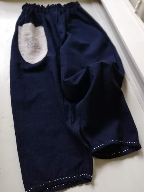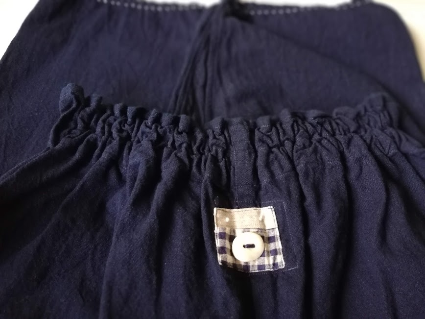 きれいな紺色に白いちくちくステッチが素敵です。