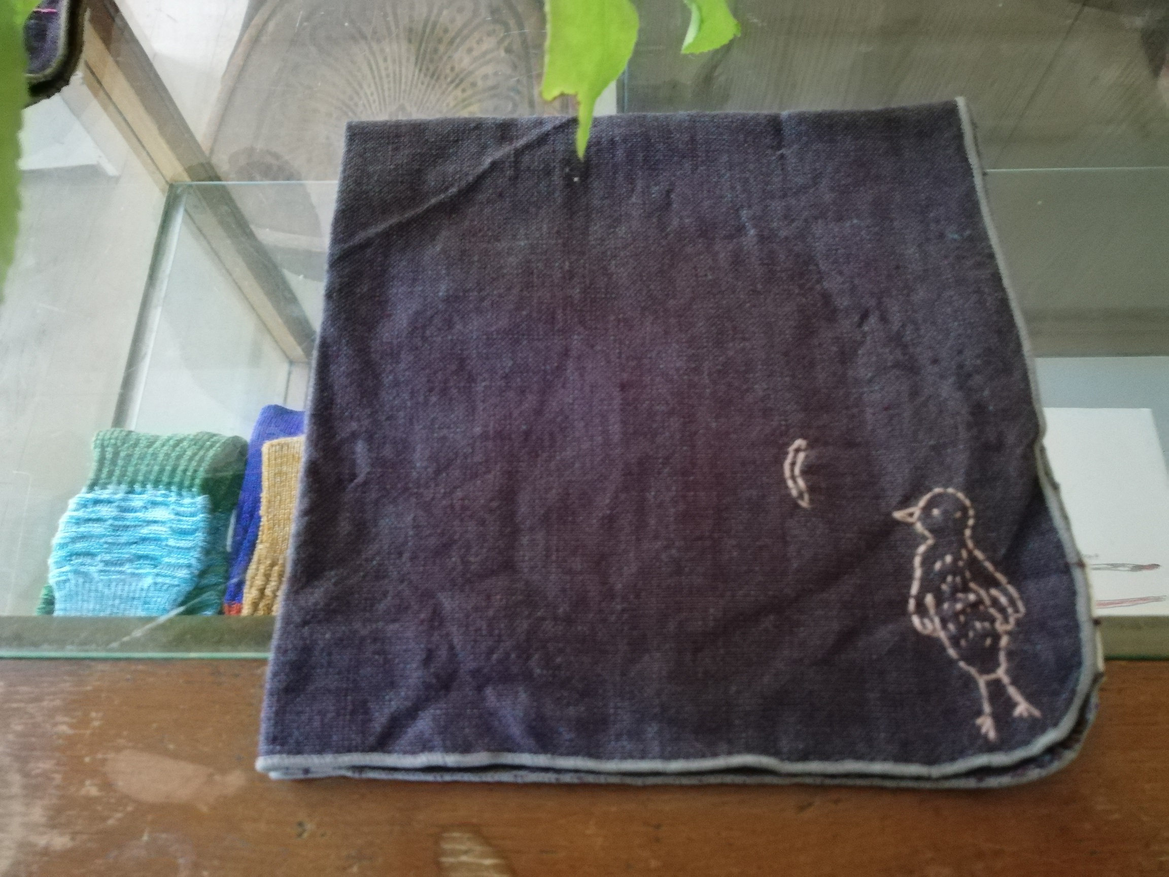 tsuyu リネンハンカチ(動物の刺しゅう入り)