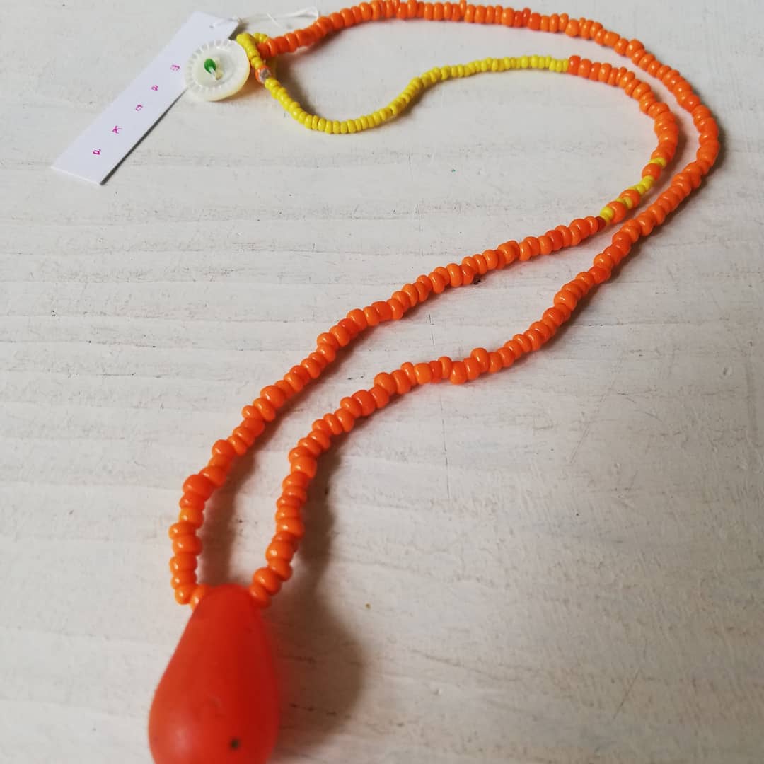 matka アンティークビーズの首飾り(オレンジ&イエロー)