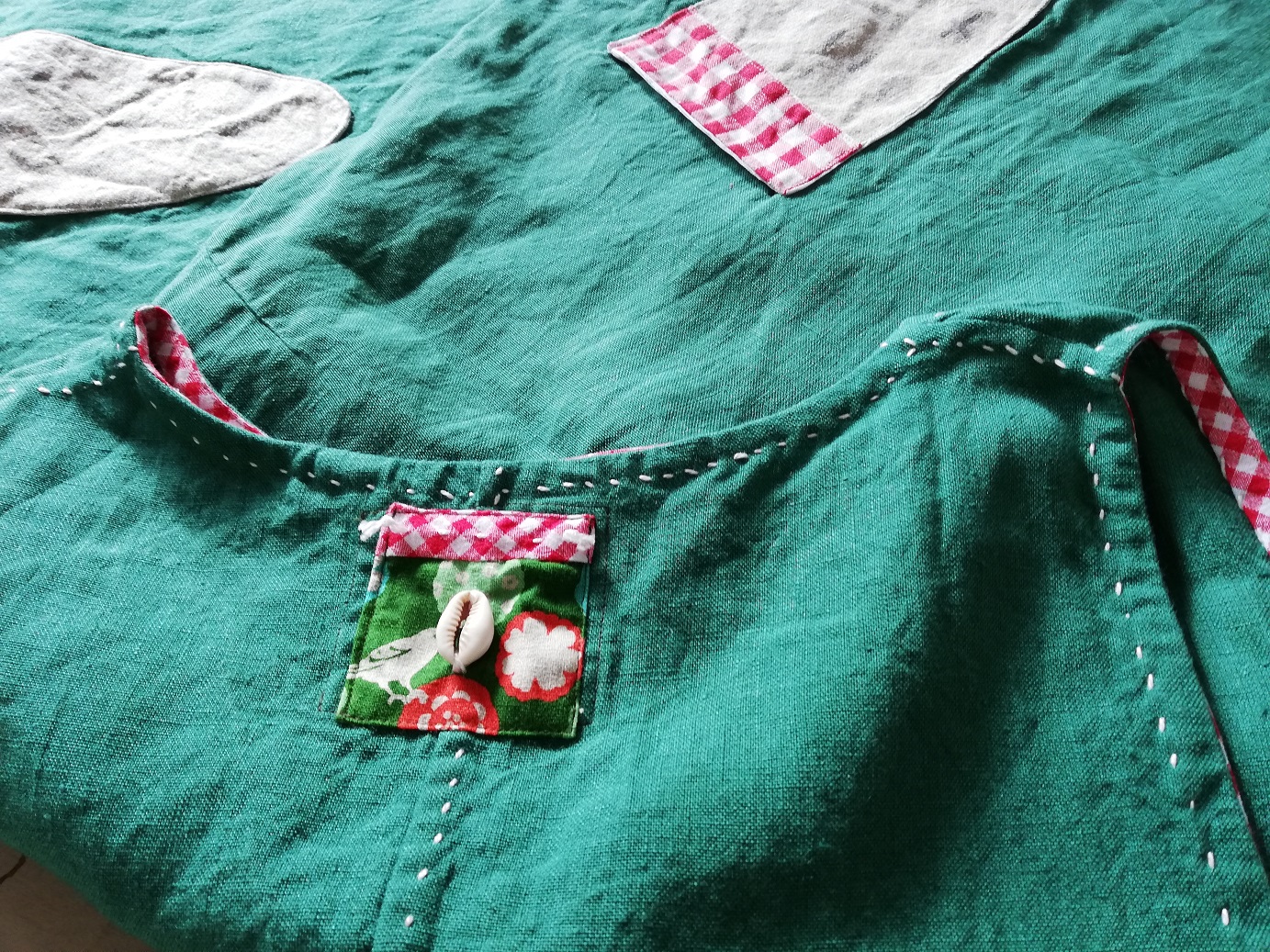 早川ユミ 野生のワンピース(緑) サイズは3種類ございます。 ①身幅 53㎝ 丈109㎝ ②身幅 57㎝ 丈109㎝ ③身幅 71㎝ 丈116㎝