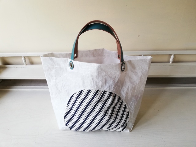 大塚淳子 ビニールバッグ/白 丸布(ストライプ)
