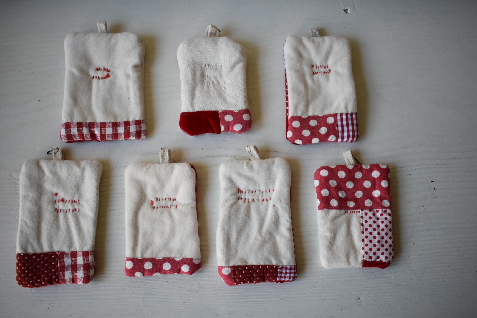 早川ユミ ちくちくなべつかみ(赤)個展作品⑬ 完売しました。