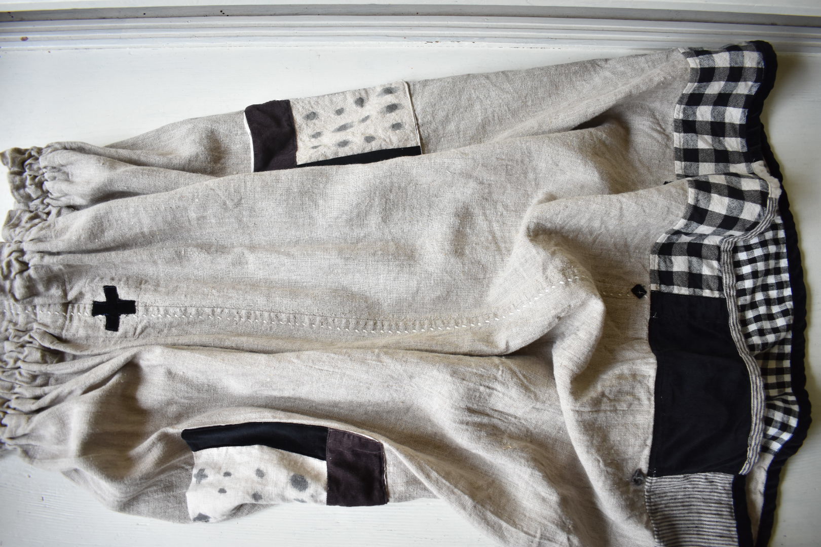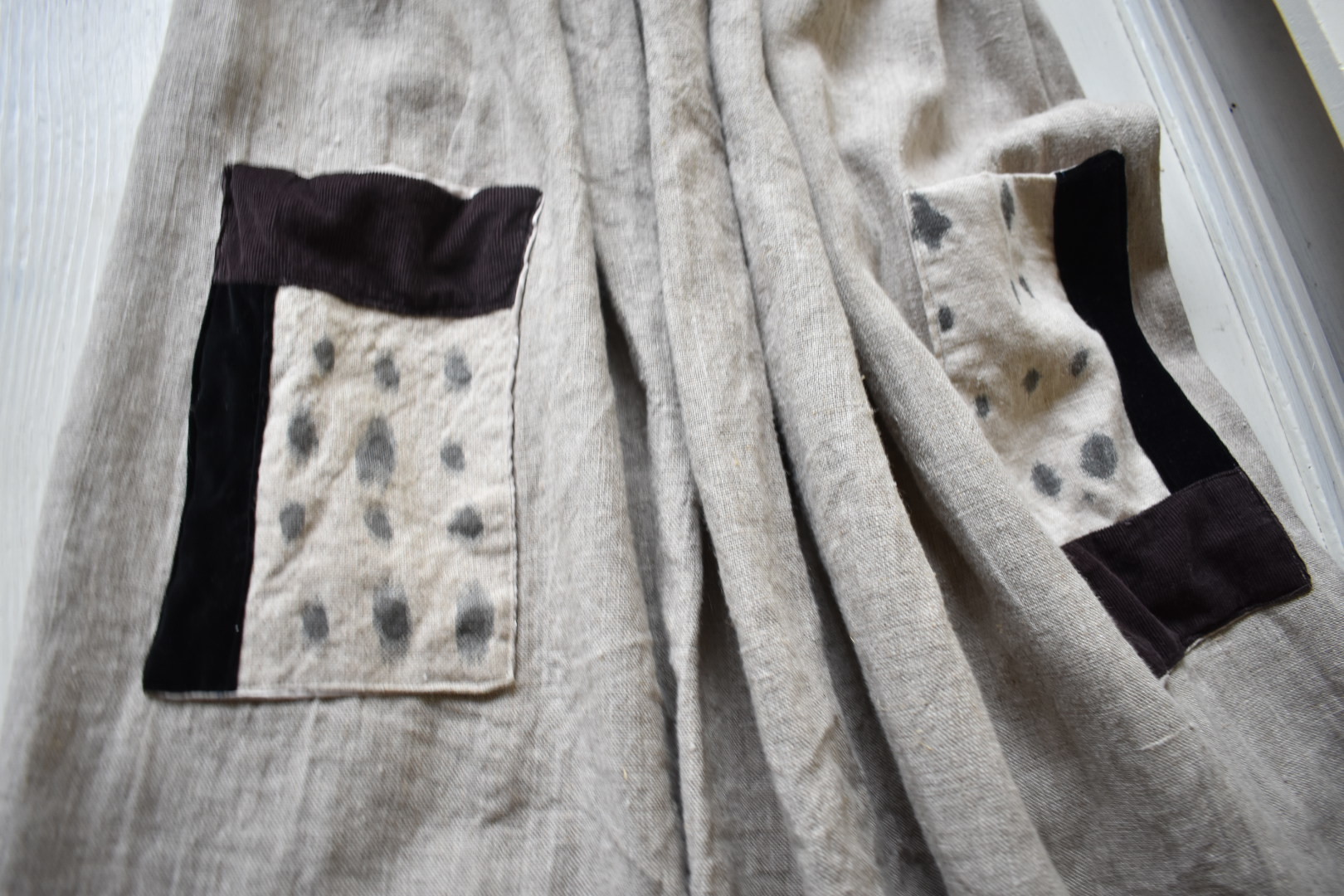 早川ユミ 麻スカート(つぎはぎ白黒)