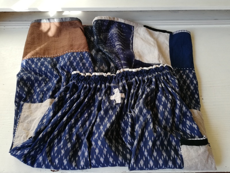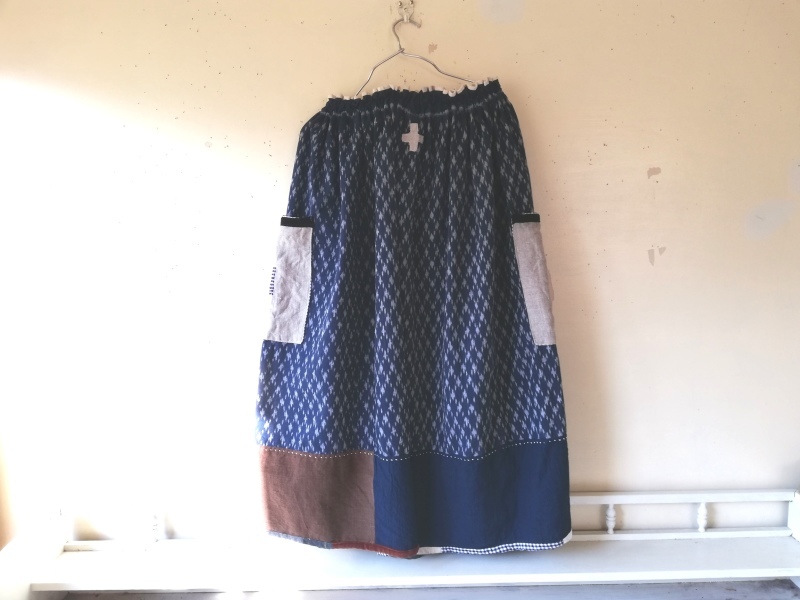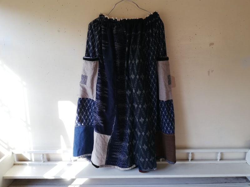 柄の違う沢山の藍染めの布が きれいに継ぎ合わさった美しいスカートです!