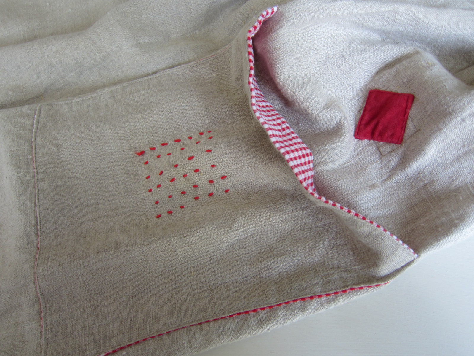 ポケット裏布は赤白のギンガムチェックがポイントです!