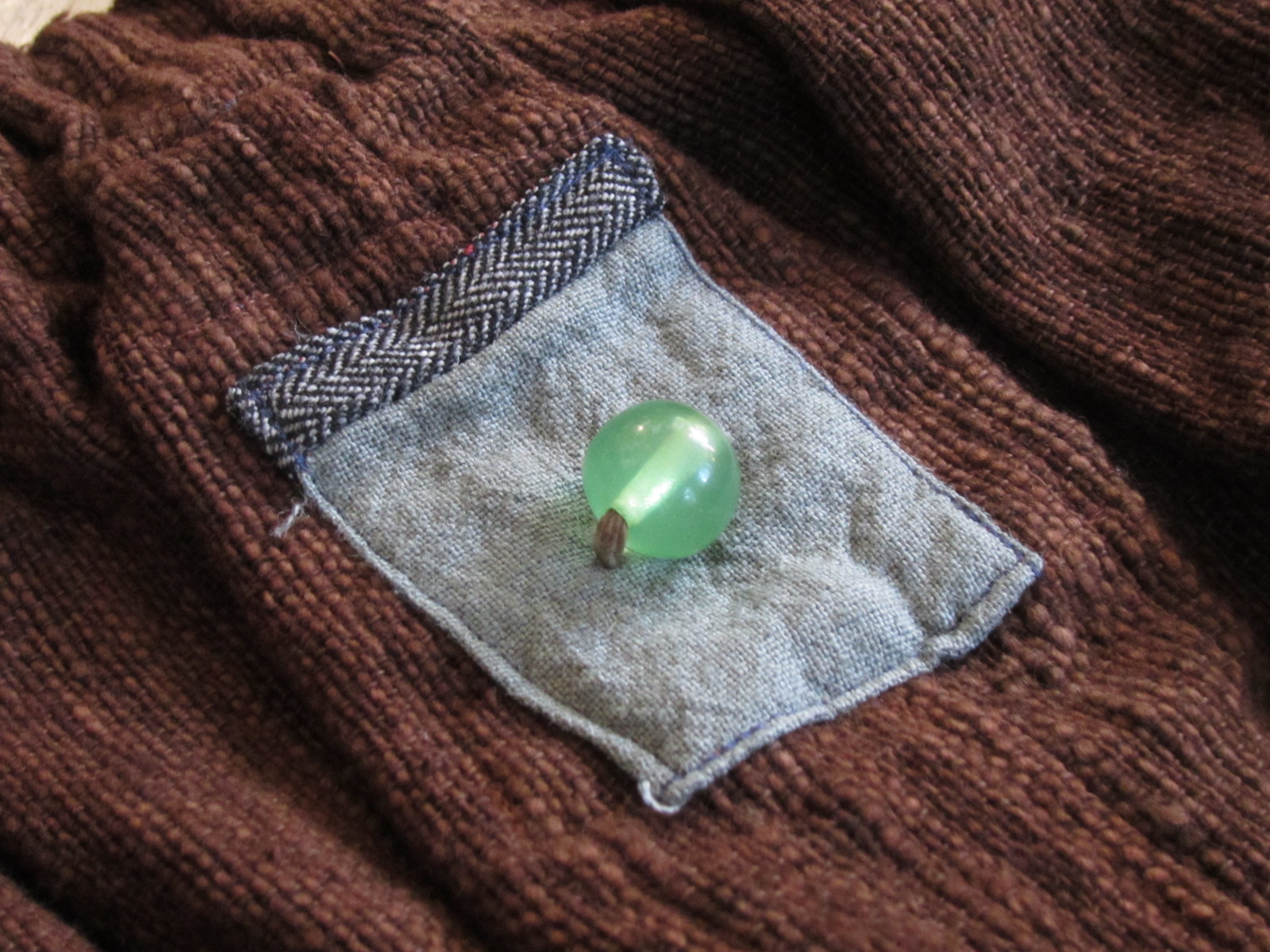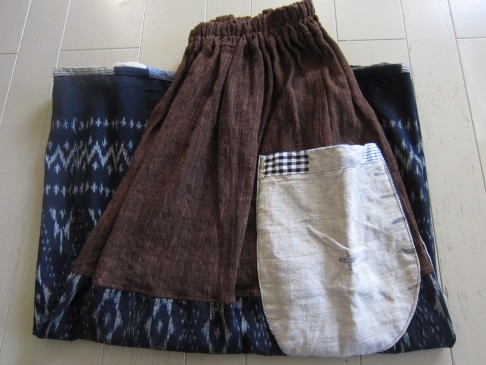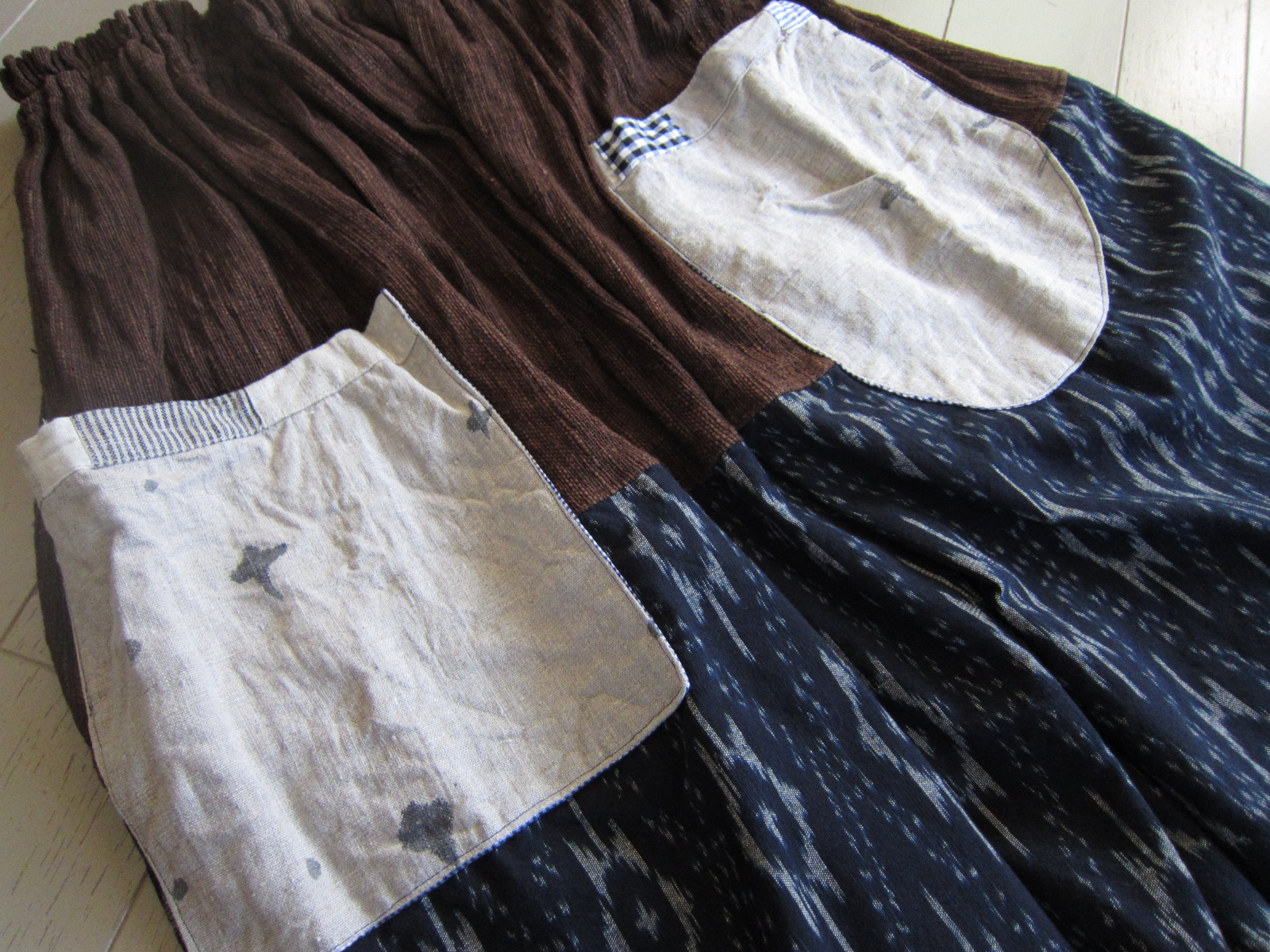 ざくざくした布の茶色と藍のコンビがとてもきれいです。