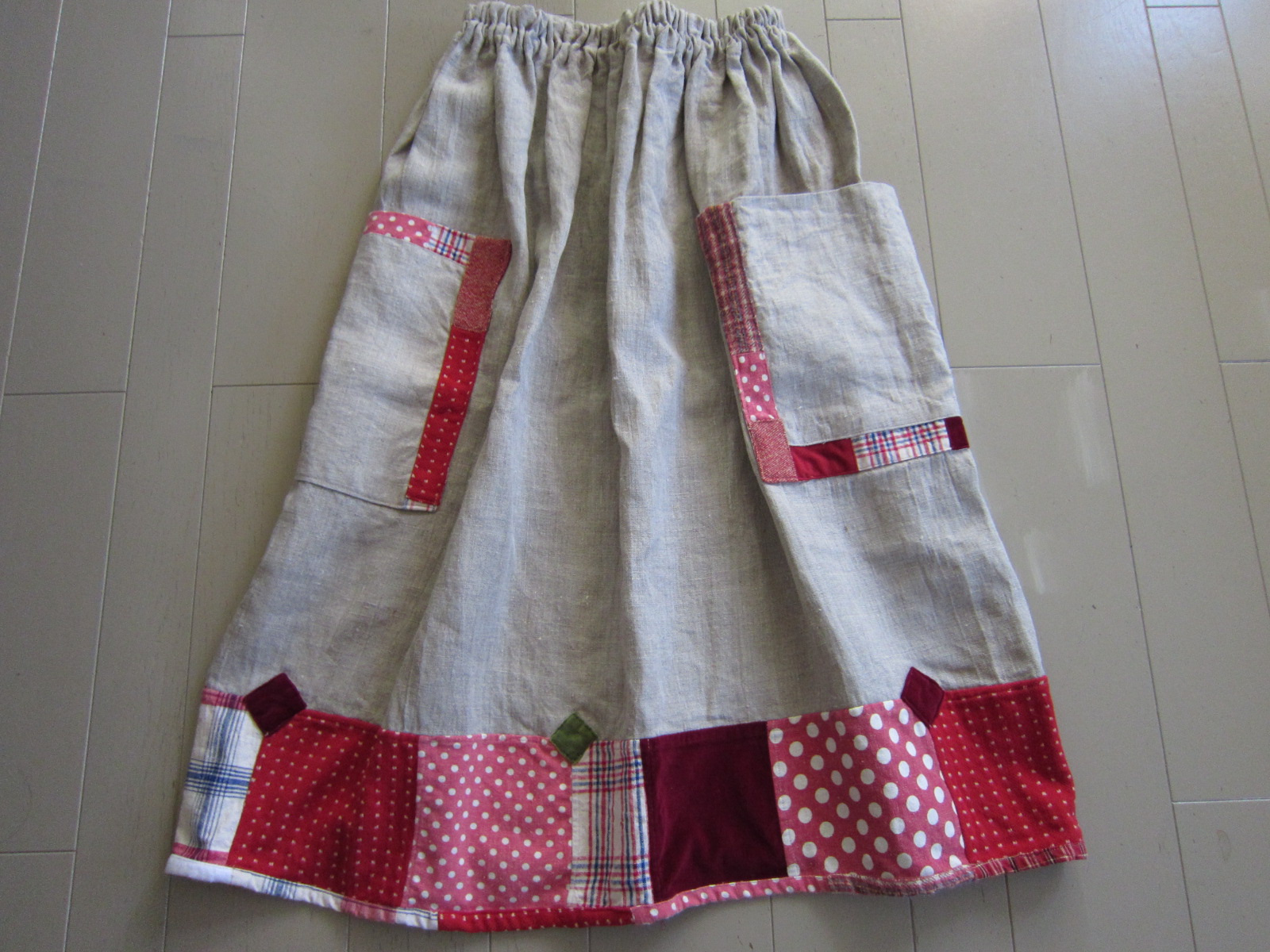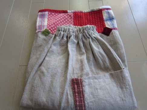 早川ユミ リトアニア麻+土佐つむぎ+上海木綿つぎはぎスカート①