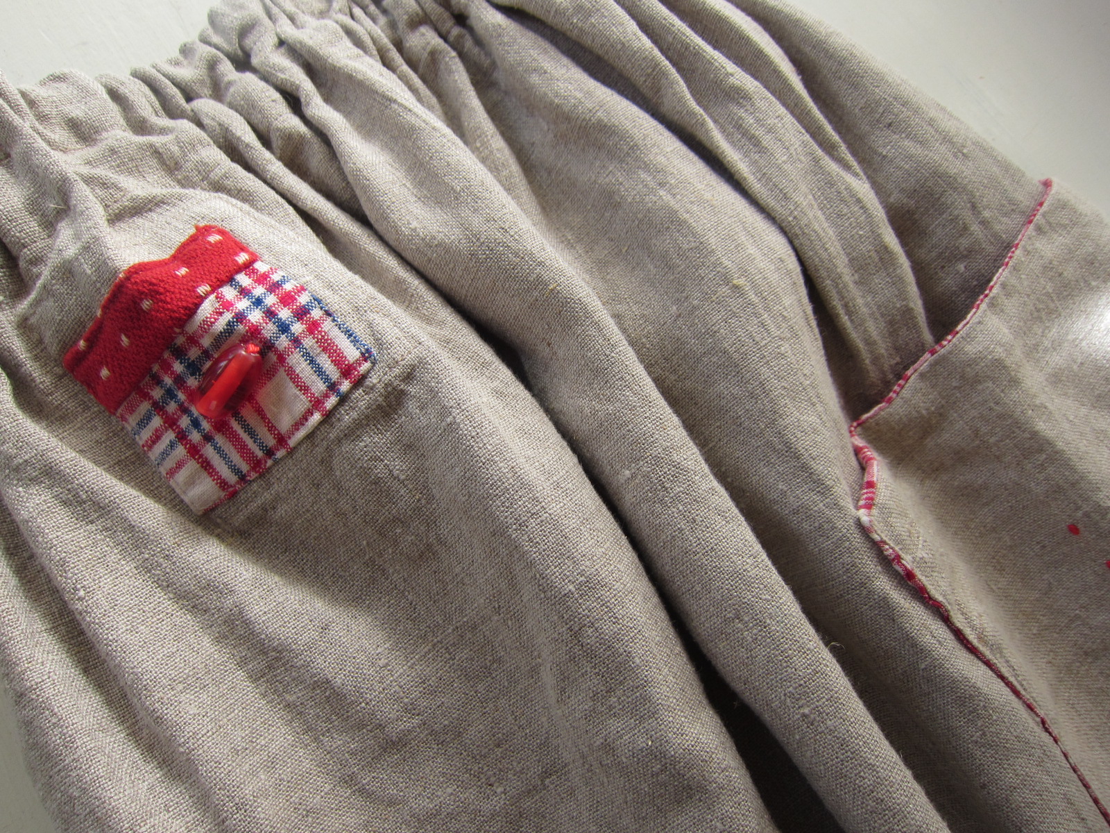 早川ユミ リトアニア麻+土佐紬+上海木綿つぎはぎスカート②
