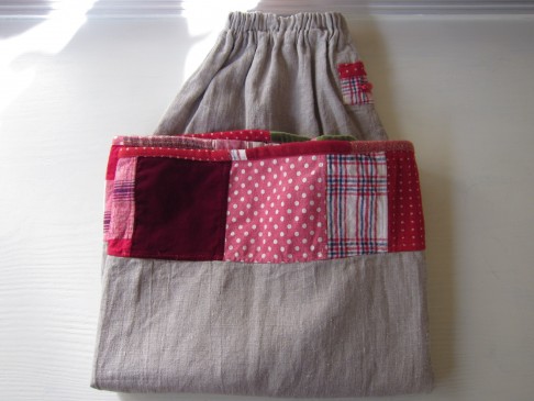 早川ユミ リトアニア麻+土佐つむぎ+上海木綿つぎはぎスカート②
