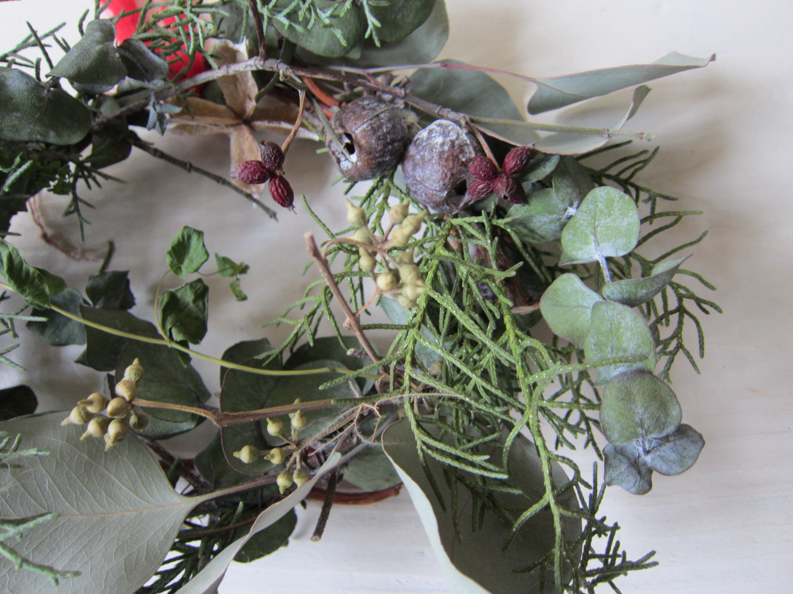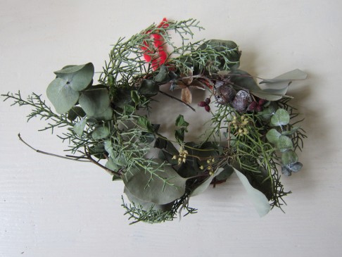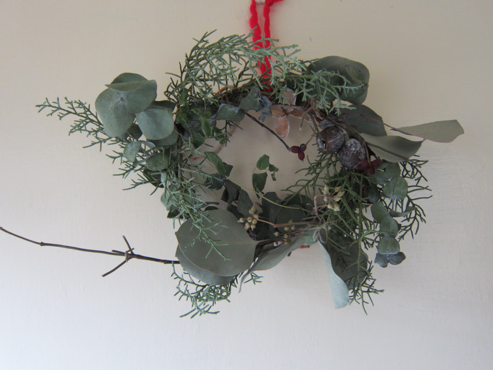 f+studio増田由希子 グリーンとハナミズキのリース(赤い毛糸付き)完売