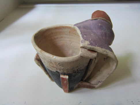 黒と紫と茶のお洒落カラーの ユニークなパーツが組み合わされた アートなマグカップです! 底にキムさんのネームが入っています。 おいておくだけでオブジェになります。 是非 ご覧くださいませ。