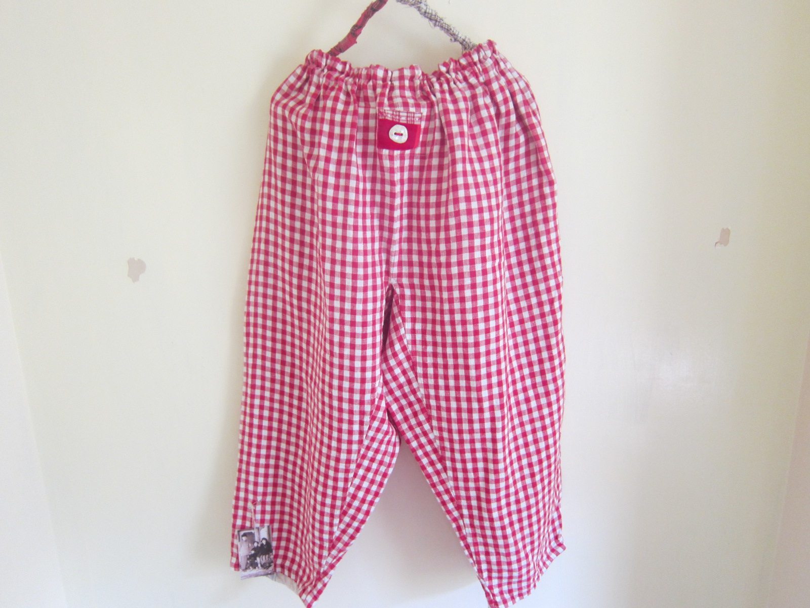 早川ユミ リトアニア麻もんぺ(赤白のギンガムチェック)