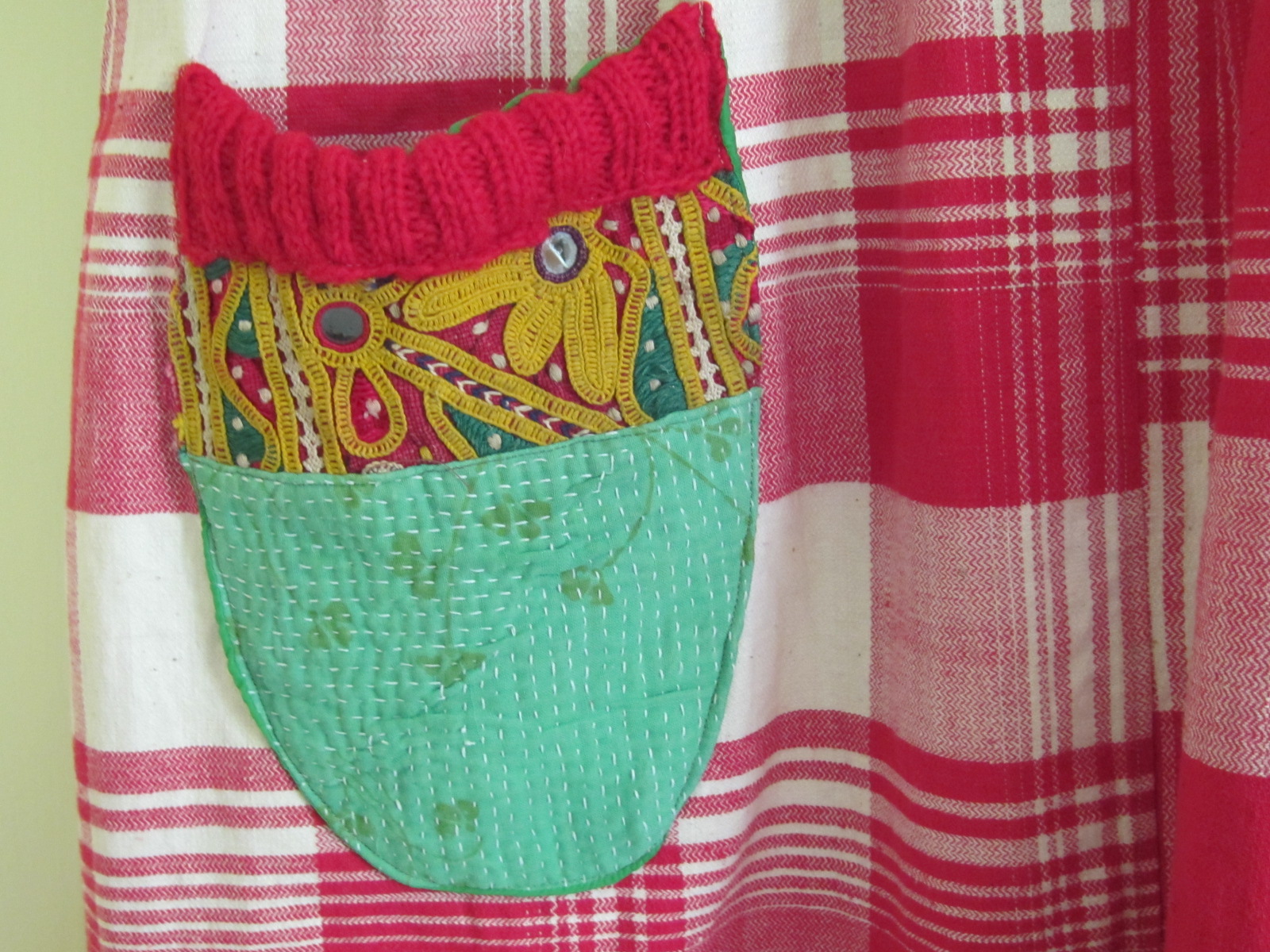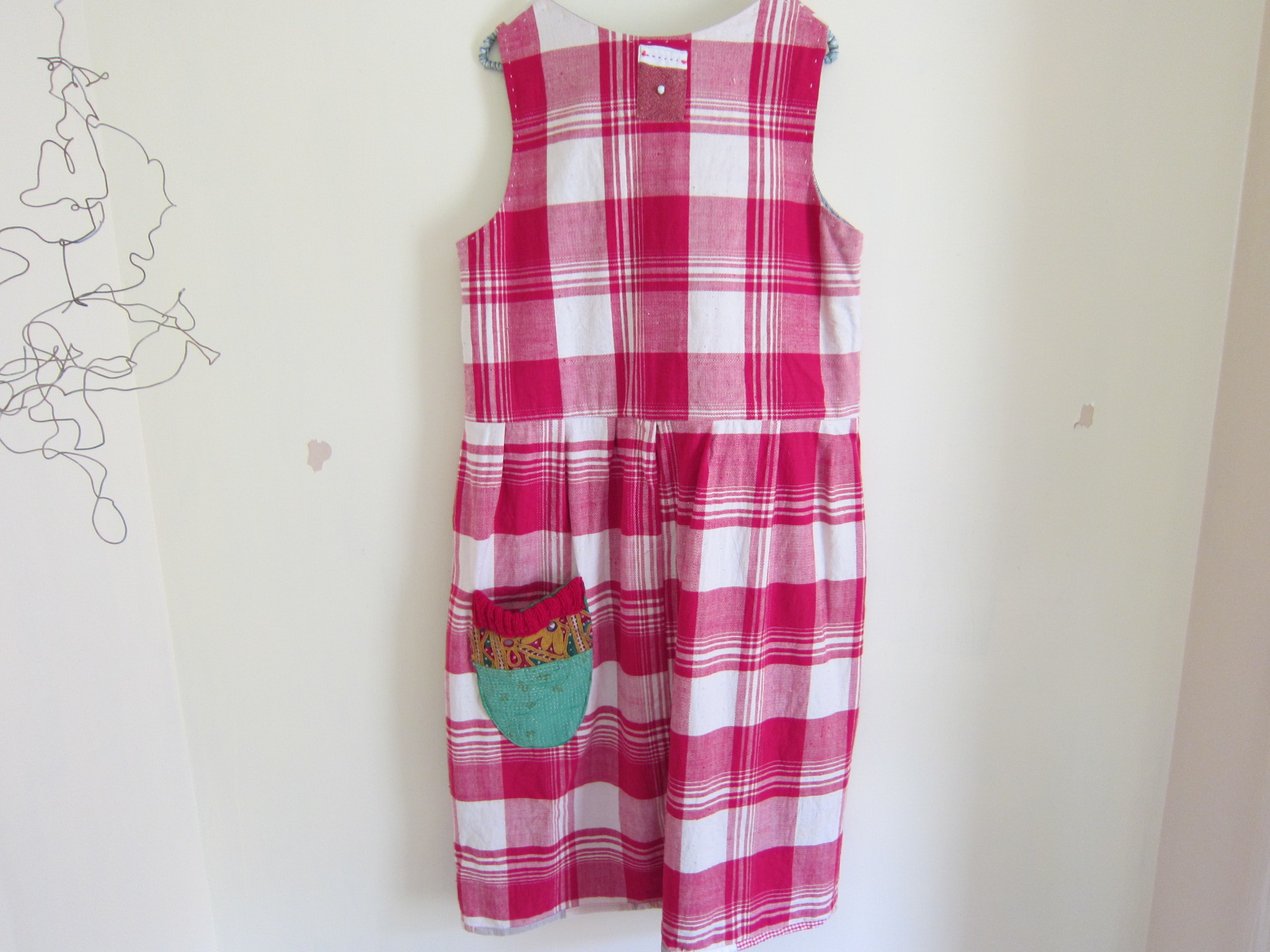 可愛いポケットが前と後ろにもついています! 元気パワーが沢山もらえそうな楽しいワンピースです。 楽しい種を一杯まきましょう~。