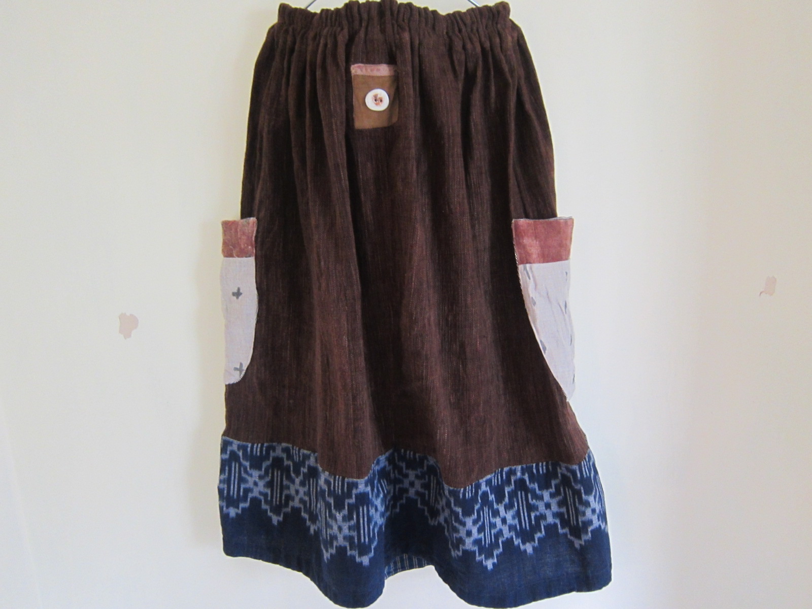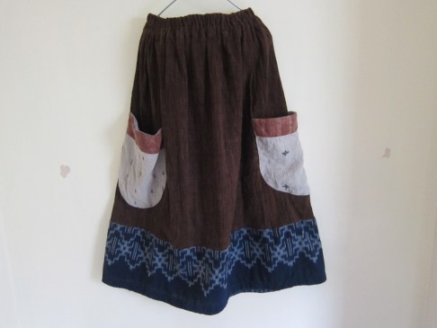 早川ユミ 茶+藍染手織り布 スカート