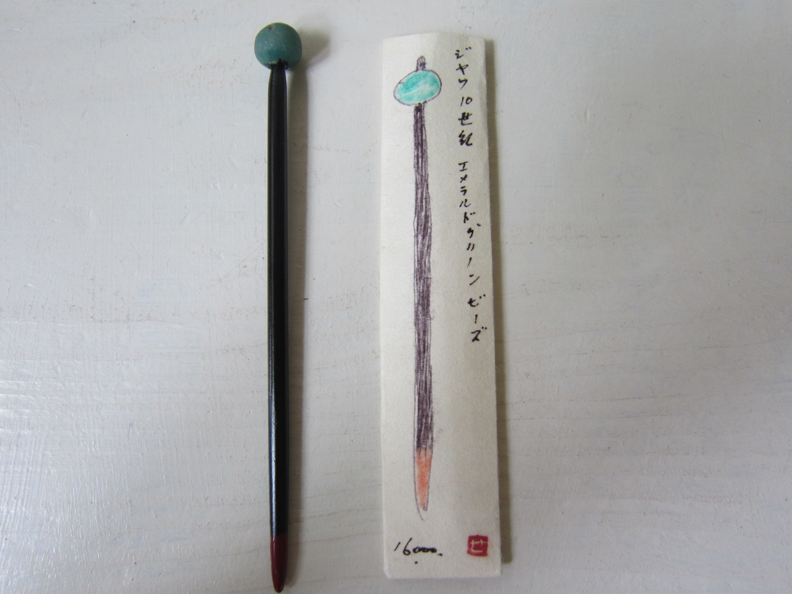 小野セツロー かんざし・ジャワ10世紀エメラルドグリーンビーズ
