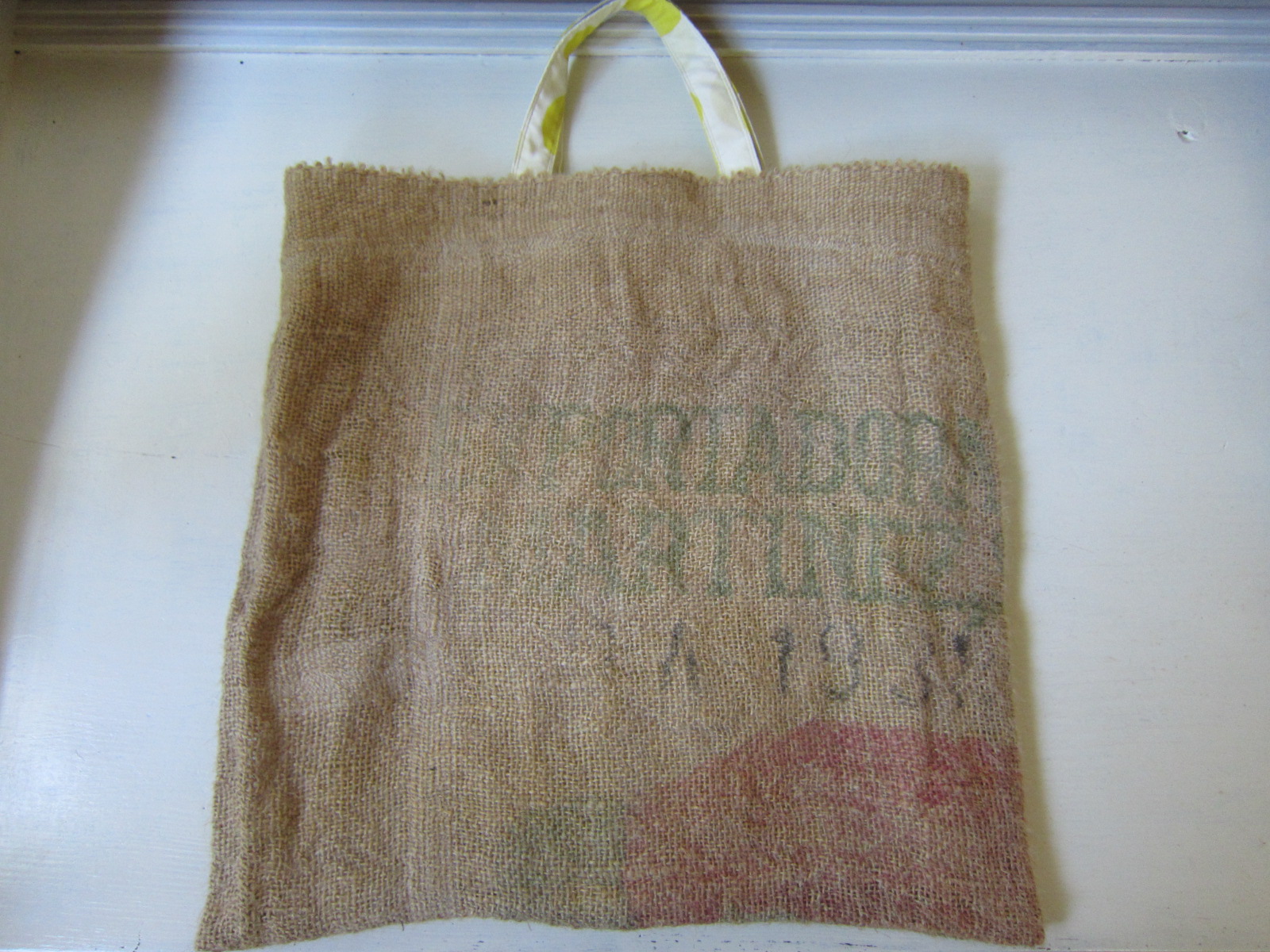 素材 珈琲豆の麻袋 裏布リネンの水玉