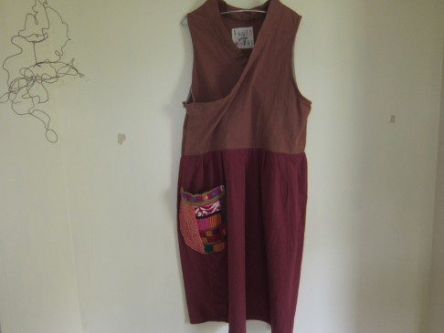 早川ユミ チベッタンワンピース(エンジ+薄茶ツートン) サイズ 身幅 100㎝ 丈111㎝